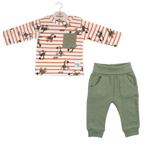 Conjunto de dos piezas para bebes compuesto por pantalón y camiseta.
