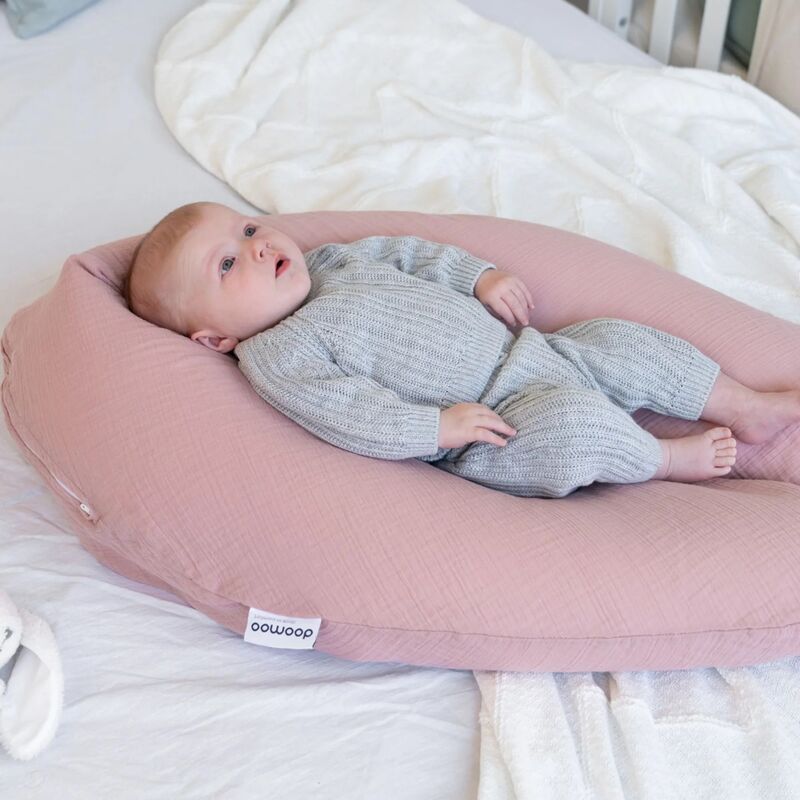 Materiales seguros y ecológicos: Malla de algodón orgánico certificada GOTS y microperlas hipoalergénicas de poliestireno expandido certificadas Oeko-TexOEKO-TEX®, libre de sustancias nocivas para la piel del bebé y la mamá.