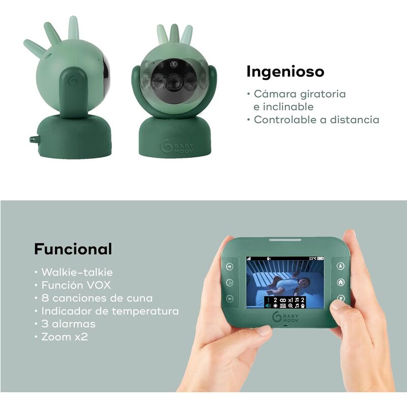El vigilabebés multifunción con su moderna cámara rotatoria e inclinable a 360°