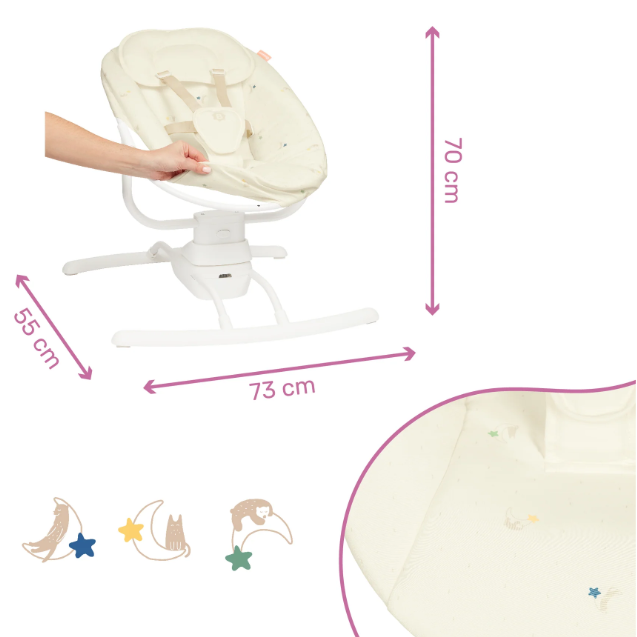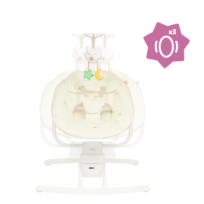 Ya no tendrás que mantener un brazo libre para llevar a tu bebé, ya que este balancín reproduce el apacible movimiento de los brazos de los padres, con 3 velocidades de balanceo lateral.