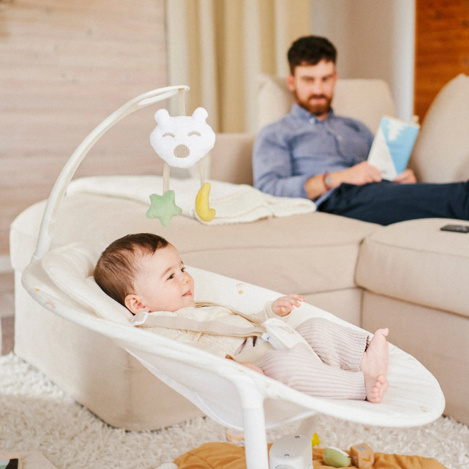 Tanto para calmar como para acunar o jugar con el bebé, el balancín te ofrece varias funciones.