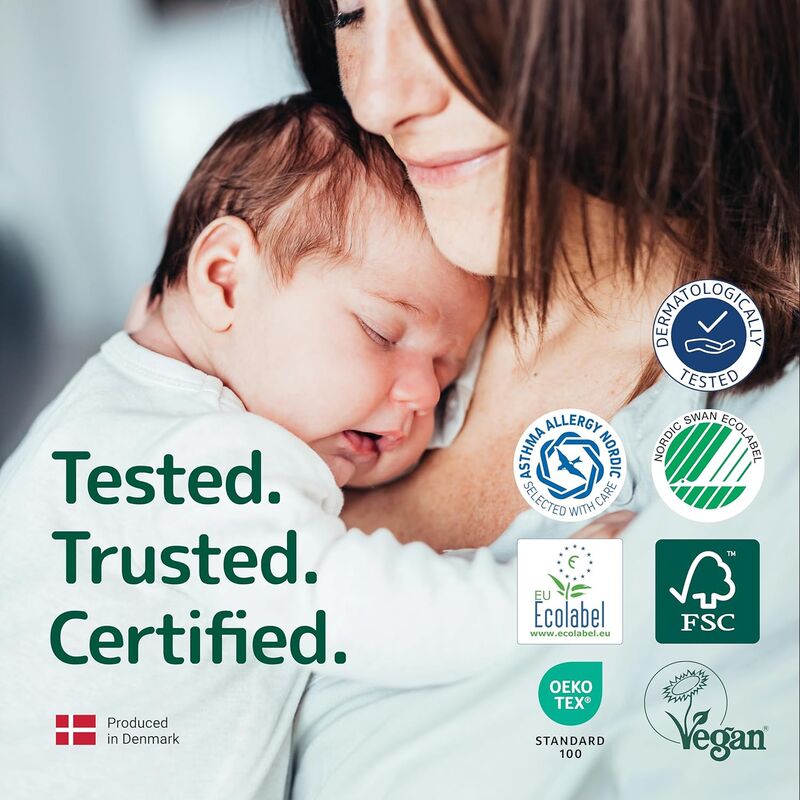 Los pañales Bambo Nature talla 3 están dermatológicamente probados y certificados con la etiqueta ecológica Nordic Swan, Asthma Allergy Nordic, el sello FSC™ (Forest Stewardship Council) y la etiqueta ecológica de la UE.