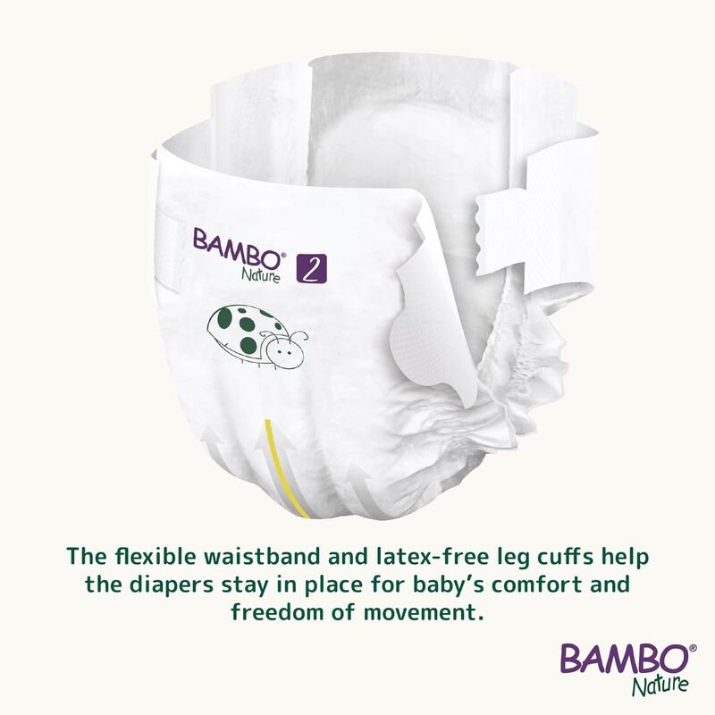 Todos los pañales Bambo Nature son libres de perfumes y parabenos, minimizando el riesgo de alergias y dermatitis del pañal.