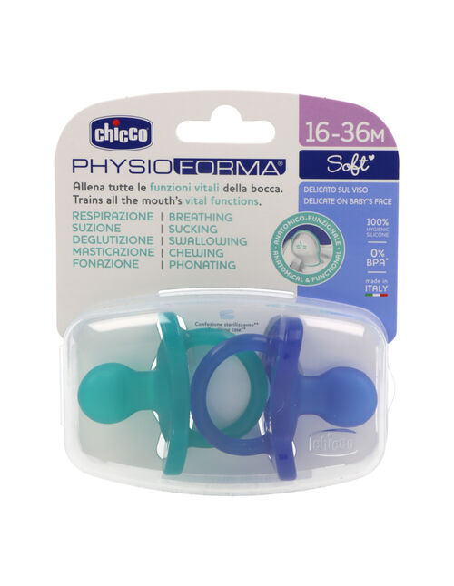 ESTUDIOS COMPROBADOS: Chupetes Chicco PhysioForma® entrenan todas las funciones vitales de la boca: respirar, chupar, tragar, masticar y vocalizar, para un crecimiento saludable.
