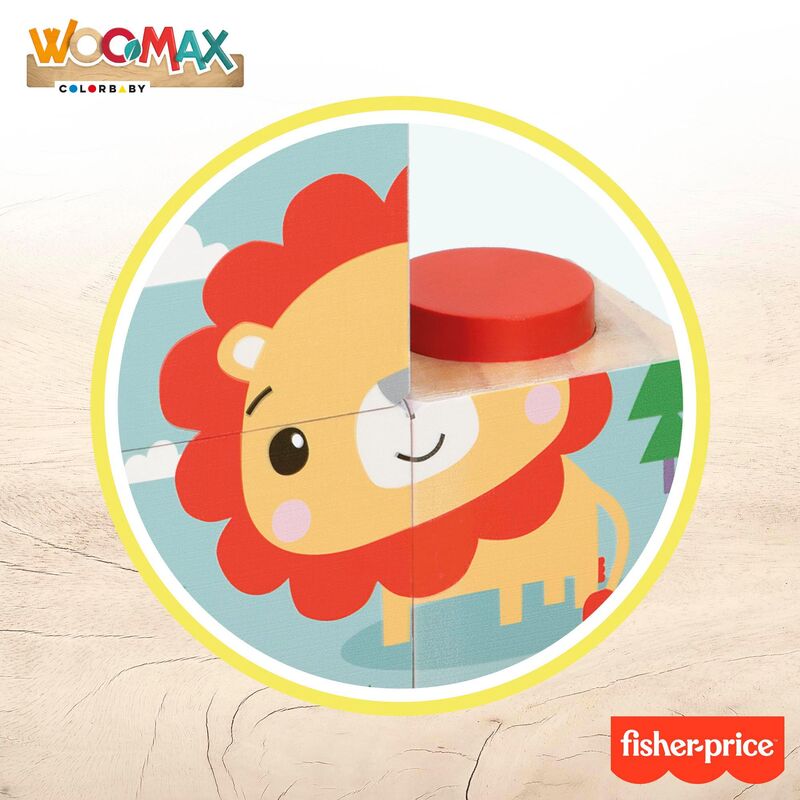 Qué animalito está detrás de este puzzle? Encaja los 4 cubos de madera y descubre cuál de los 4 animalitos se esconde entre este juego de cubos de madera de WOOMAX Fisher-Price.