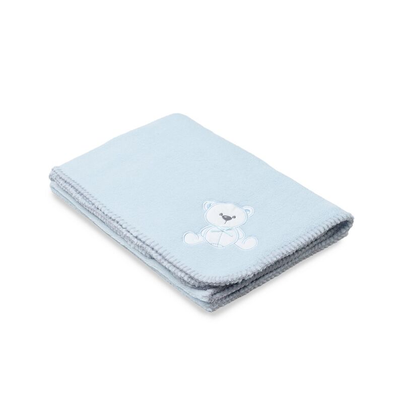 INTERBABY MANTA BORDADA OSO LAZO AZUL 80X110