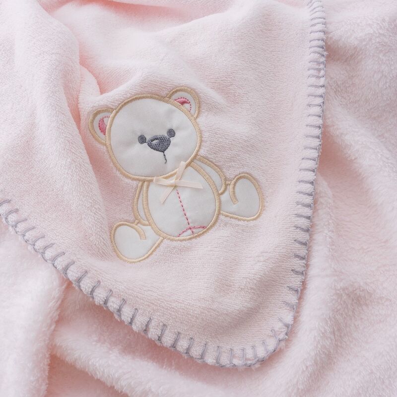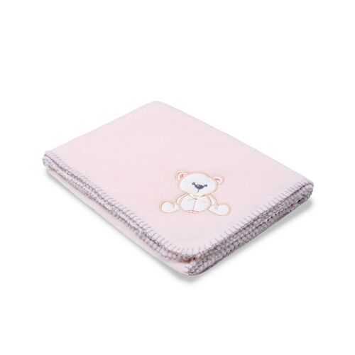 INTERBABY MANTA BORDADA OSO LAZO ROSA 80X110