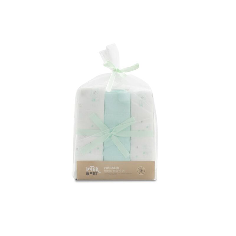 INTERBABY PACK 3 GASAS BAMBÚ BEAR MENTA