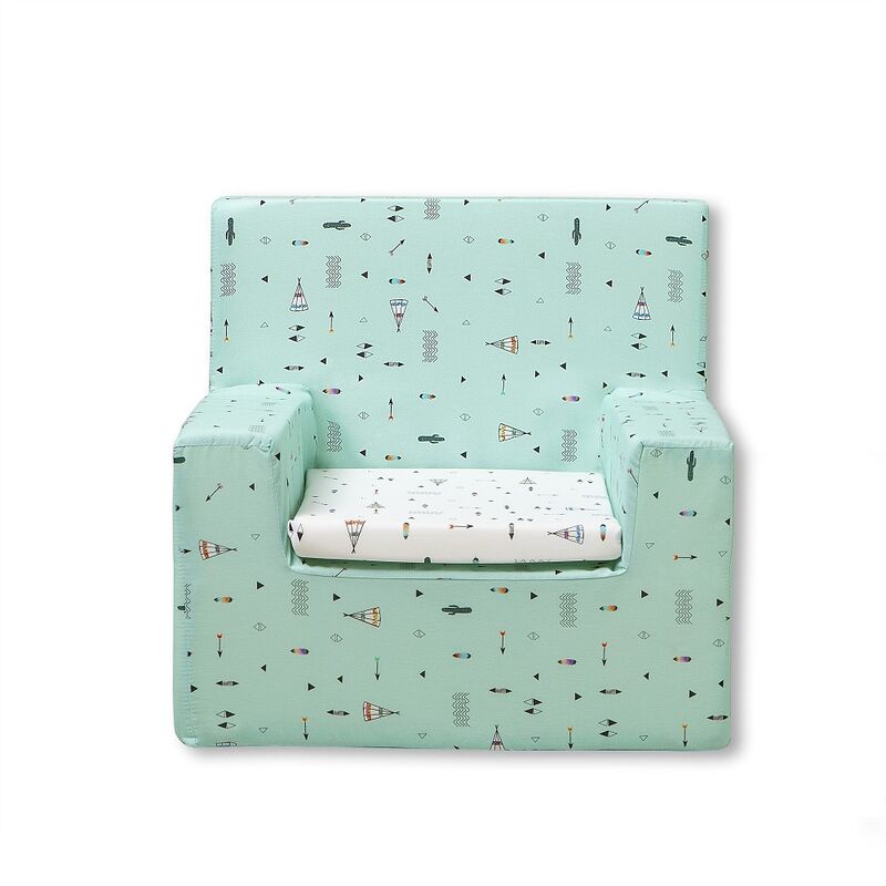 Es un sillón de espuma con el textil desenfundable para poder lavarlo con facilidad. Con un estampado moderno y actual, para que la habitación de tu peque esté siempre a la moda.