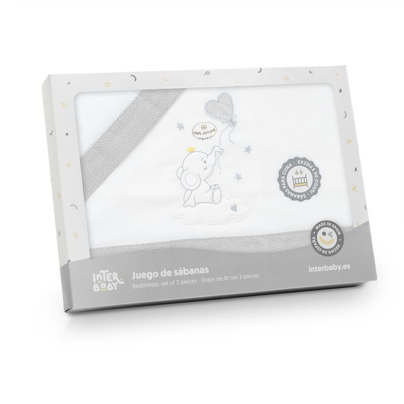INTERBABY TRIPTICO COCHE ELEFANTE GLOBO CORAZON BCO/GRIS