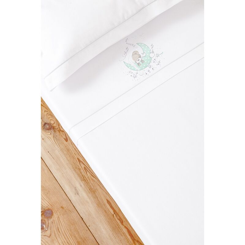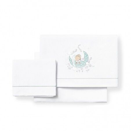 Juego de Sábanas 100% Algodón para Cuna New Sleeping Bco/Verde.