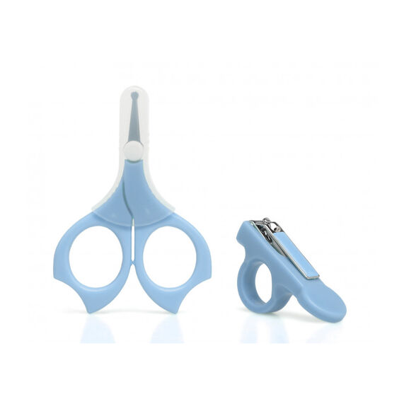 Este práctico set para la manicura infantil incluye tijeras con la punta redondeada, para un manejo más seguro, (y capucha de protección para poder llevar en el bolso) y cortaúñas.