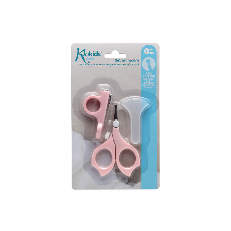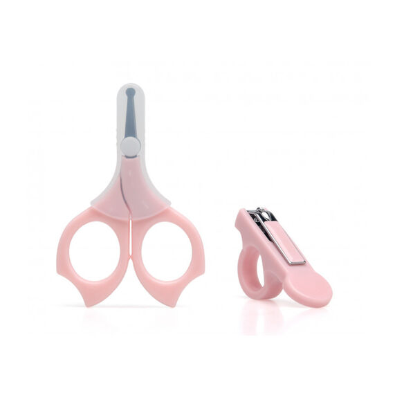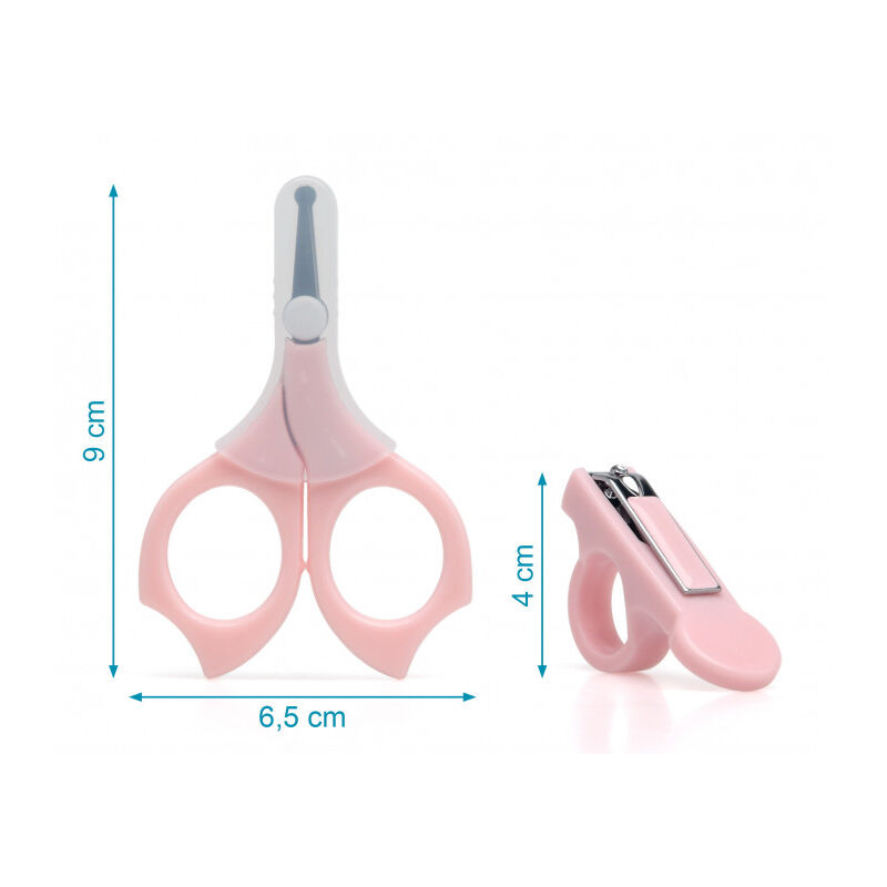 Este práctico set para la manicura infantil incluye tijeras con la punta redondeada, para un manejo más seguro, (y capucha de protección para poder llevar en el bolso) y cortaúñas.
