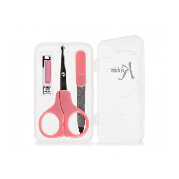 Este práctico set para la manicura infantil incluye tijeras con la punta redondeada, para un manejo más seguro, cortaúñas, lima y una caja para su almacenamiento y trasporte.