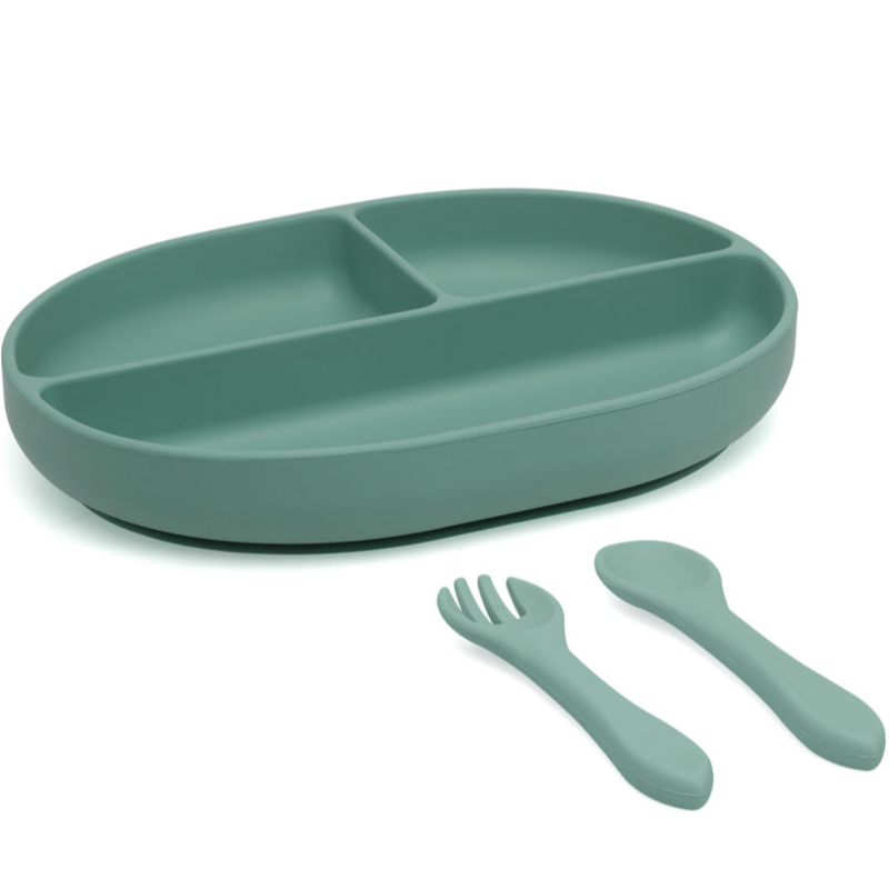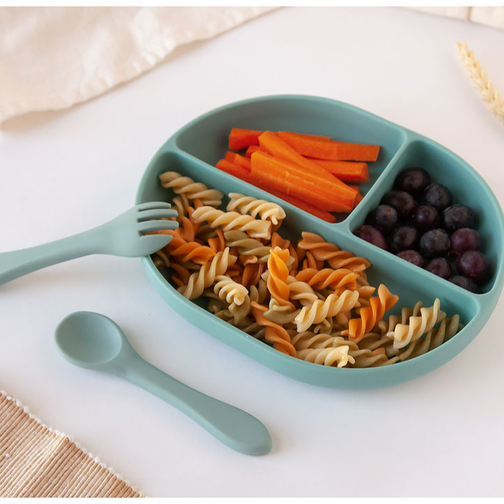 Esta bandeja con 3 compartimentos está diseñada para promover una experiencia de alimentación divertida y educativa para los bebés.