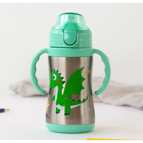 ¿Cómo es esta botella? Fácil de coger por sus dos asas hechas a la medida de los más pequeños, ligera y segura para que no se derrame el líquido y puedan beber tranquilos.