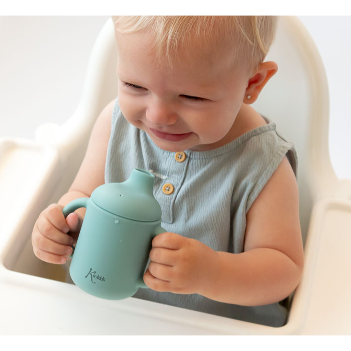 Nuestra taza de silicona está diseñada para los peques que comienzan a beber ellos solos.