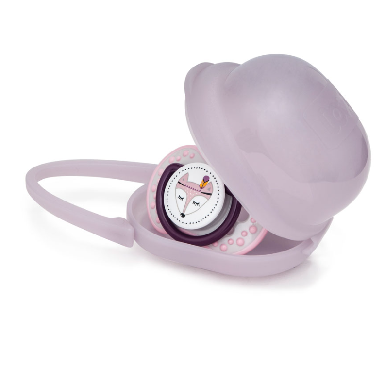 - Permite un almacenamiento cómodo e higiénico del chupete durante un paseo o de viaje.