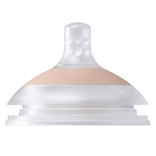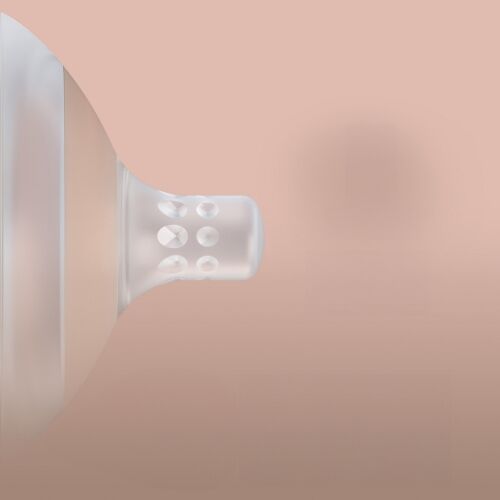 - Sensación natural y agradable. Suavidad y elasticidad mejoradas: Gracias a su superficie mate y delicada, la tetina ofrece un tacto suave y aterciopelado, reminiscente del contacto con la piel materna.