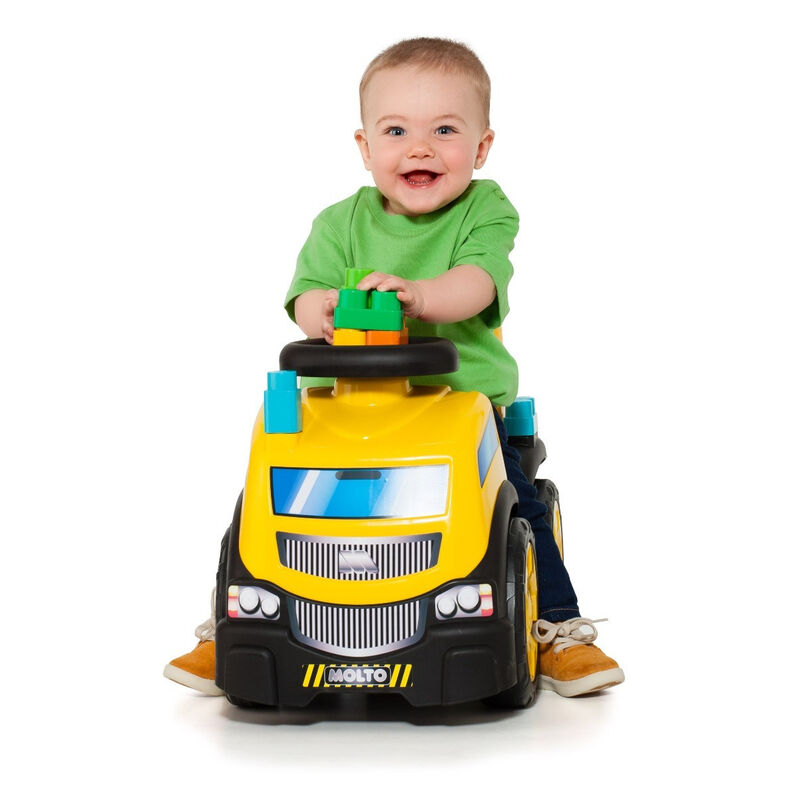 El Truck & Blocks Ride-On 3 en 1 de Moltó es un correpasillos con forma de camión que ofrece diversión y aprendizaje a lo largo de 3 modos de juego. Ideal para bebés desde los 10 meses, este camión amarillo les ayuda a desarrollar motricidad, equilibrio y creatividad mientras disfrutan de su primer vehículo.