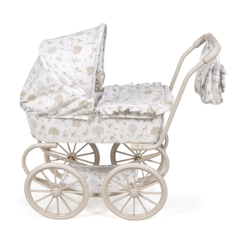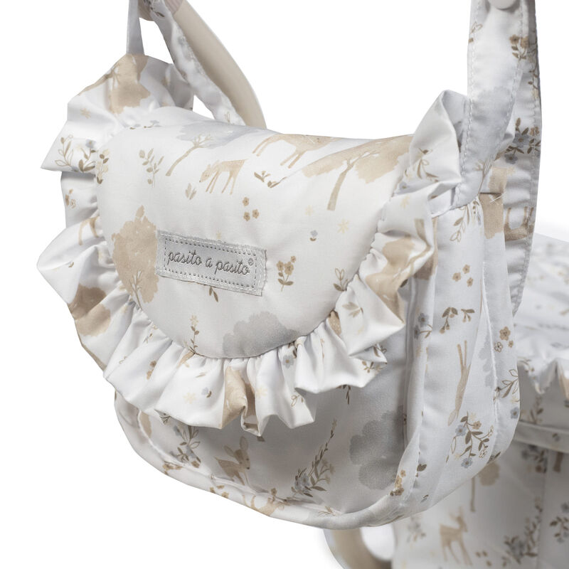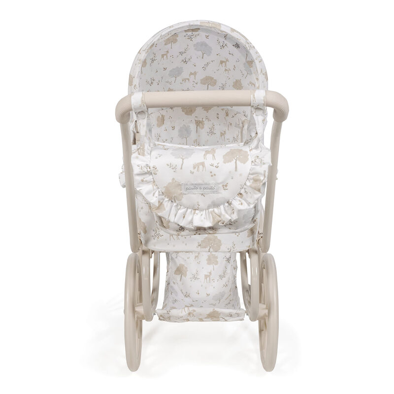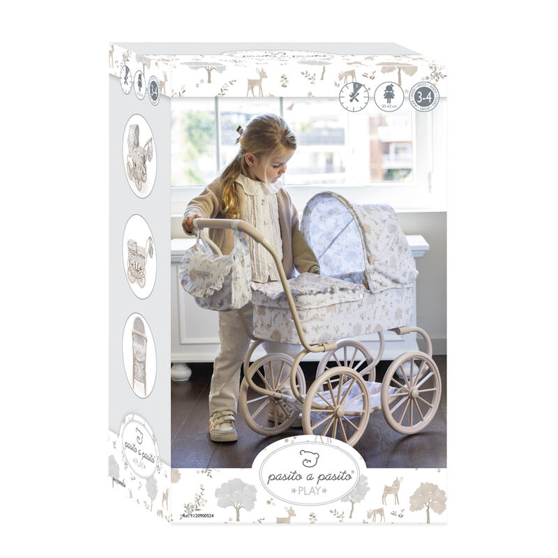 Cuco clásico de muñecas Pasito a Pasito Colección Nara – ¡Paseos de Ensueño para tus Muñecas! Sumérgete en la elegancia y la tradición con el magnífico cochecito clásico de muñecas de la exclusiva colección Nara de Pasito a Pasito. Este encantador carrito, con su diseño vintage y detalles exquisitos, es el juguete perfecto para niños y niñas de 3 a 4 años que deseen pasear a sus muñecas con un toque de distinción. Diseño clásico y romántico: inspirado en los cochecitos de bebé de antaño, presenta una estructura robusta con ruedas grandes de estilo tradicional y un capazo espacioso, evocando la nostalgia y la belleza atemporal. Estampado «Nara» emblemático: decorado con el delicado y dulce estampado de cervatillos de la colección Nara de Pasito a Pasito, en tonos beige, que aporta un aire de sofisticación y ternura. Detalles premium: acabados cuidados al máximo, con volantes y una confección impecable que resaltan la calidad y el mimo de la marca Pasito a Pasito. Altura ideal del manillar: con un manillar a 68 cm de altura, este cochecito está perfectamente adaptado para la estatura de los pequeños de 3 a 4 años, asegurando un agarre cómodo y una experiencia de juego natural. Amplio espacio para muñecas: sus generosas dimensiones de 74x41x68h cm lo hacen ideal para muñecas de 30 a 42 cm, permitiendo que los «bebés» descansen y viajen con total confort. Incluye bolsa de paseo a juego: el cochecito viene acompañado de una adorable bolsa de paseo con el mismo estampado Nara, perfecta para que los niños lleven los accesorios de su muñeca o sus pequeños tesoros. Estructura robusta y estable: diseñado para resistir el juego diario, proporcionando estabilidad y seguridad en cada paseo. Cumple Normativa Europea EN-71: como todos los juguetes de Pasito a Pasito, este cochecito ha sido fabricado siguiendo los más altos estándares de seguridad y ha pasado las estrictas pruebas de la normativa europea EN-71, garantizando un juego seguro y sin preocupaciones. Este Cochecito Clásico de Muñecas no es solo un juguete; es una invitación al juego de rol, estimulando la imaginación, la empatía y las habilidades sociales de los niños mientras imitan a los adultos en sus tareas de cuidado. Un regalo memorable que encantará a cualquier pequeño/a amante de las muñecas. ¡Permite que la magia de la infancia cobre vida con el elegante Cochecito Clásico de Muñecas Pasito a Pasito Colección Nara!