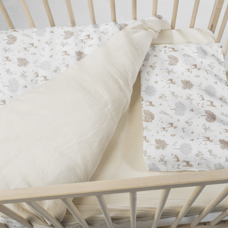 Set completo para cuna de 120×60 cm Nara de Pasito a Pasito: edredón, funda, sábana bajera y almohada. Prepara el nido perfecto para tu bebé con el set completo de ropa de cuna 120×60 cm de la adorable colección Nara de Pasito a Pasito. Este conjunto todo en uno ha sido cuidadosamente diseñado para ofrecer el máximo confort, seguridad y estilo en la habitación de tu pequeño, cumpliendo con la estricta normativa EN-16780 para tu tranquilidad. El set incluye: funda de edredón y edredón (relleno), ambos confeccionados en 100% algodón de alta calidad, garantizan una suavidad inigualable y una transpirabilidad óptima. El edredón proporciona la calidez necesaria para un sueño confortable, mientras que la funda, con el encantador estampado de la Colección Nara (ciervos y árboles en tonos neutros), añade un toque de dulzura y elegancia a la cuna. Sábana bajera ajustable de muselina 100% algodón, un elemento esencial para el descanso del bebé. Fabricada con muselina de algodón 100%, esta sábana es excepcionalmente suave, ligera y transpirable, ideal para la delicada piel del recién nacido. Su diseño ajustable con elástico asegura un ajuste perfecto al colchón de 120×60 cm, evitando arrugas y garantizando una superficie de descanso segura. Almohada con rejilla 3D transpirable, pensada para el soporte y la ventilación. El interior de la almohada incorpora una rejilla 3D transpirable que favorece la circulación del aire, ayudando a prevenir la acumulación de calor y humedad. Esto contribuye a un entorno de sueño más fresco, higiénico y seguro para tu bebé. La colección Nara de Pasito a Pasito se distingue por su diseño atemporal y unisex, que combina a la perfección con cualquier estilo de decoración infantil. Los materiales utilizados, 100% algodón en todas las piezas, son respetuosos con la piel sensible del bebé, además de ser fáciles de mantener, ya que todas las prendas son lavables a máquina. Este juego de cuna de 120×60 cm es la solución ideal para vestir la cuna de tu bebé con productos de alta calidad que priorizan su bienestar. Un regalo perfecto para futuros padres o una inversión inteligente para asegurar un ambiente de sueño seguro, cómodo y hermoso. Descubre la excelencia de Pasito a Pasito en cada detalle. Set completo de cuna 120×60 Nara de Pasito a Pasito: edredón, funda, sábana bajera de muselina y almohada transpirable. 100% algodón. ¡Confort y seguridad! Todos nuestros productos están fabricados conforme a las más exigentes normativas europeas, con materiales de gran calidad, libres de colorantes azoicos, ftalatos y sustancias nocivas para la salud. Tela de fácil limpieza, se recomienda lavar a máquina a 30º. Los productos para bebé de Pasito a Pasito cuentan con un diseño muy diferente a todas las demás. Sus colecciones se caracterizan por el trabajo al detallada, pensadas siempre desde un punto de vista práctico. Utilizan materiales de primera calidad para remarcar la elegancia y la armonía en cada una de sus piezas. Nuestros modelos son exclusivos y de estilo inconfundible, pensados en las madres actuales que gozan de buen gusto y que aprecian los detalles tanto como nosotros.