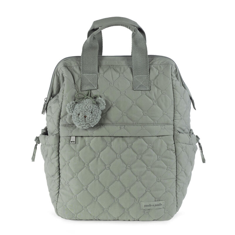 Mochila Paddington verde de Pasito a pasito elaborado en un resistente material acolchado. De gran capacidad para llevar todo lo que necesitas tu y tu bebé. Bolsillos interiores y exteriores para tenerlo todo a mano y en orden. Tiene un bolsillo interior térmico para biberones y un bolsillo plastificado para la ropa mojada. También incorpora dos bolsillos laterales para botellas o biberones. Tiene 2 asas grandes ajustables para que puedas usarla colgada a la espalda, asas de mano y otras dos asas pequeñas para que puedas usarla colgada del carrito del bebé. Incluye cambiador. Está fabricado con materiales de gran calidad, libres de colorantes azoicos, ftalatos y sustancias nocivas para la salud. Además se puede lavar a mano o a máquina a temperaturas de hasta 30º. Los productos para bebé de Pasito a Pasito cuentan con un diseño muy diferente a todas las demás. Sus colecciones se caracterizan por el trabajo al detallada, pensadas siempre desde un punto de vista práctico. Utilizan materiales de primera calidad para remarcar la elegancia y la armonía en cada una de sus piezas. Nuestros modelos son exclusivos y de estilo inconfundible, pensados para madres actuales que gozan de buen gusto y que aprecian los detalles tanto como nosotros. Especificaciones: Materiales: 100% poliéster. Medidas: 27X37X15 cm.