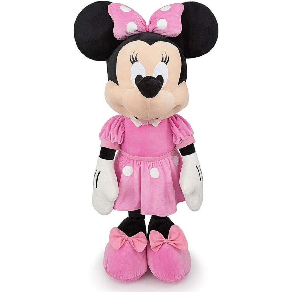 Minnie Mouse en forma de peluche de 120 cm de altura, con su clásico vestidito rosa y lazo Gigantesco y hecho de material muy suave y abrazable Peluche 100% original de licencia oficial Disney Apto desde los primeros meses de vida y para todas las edades.
