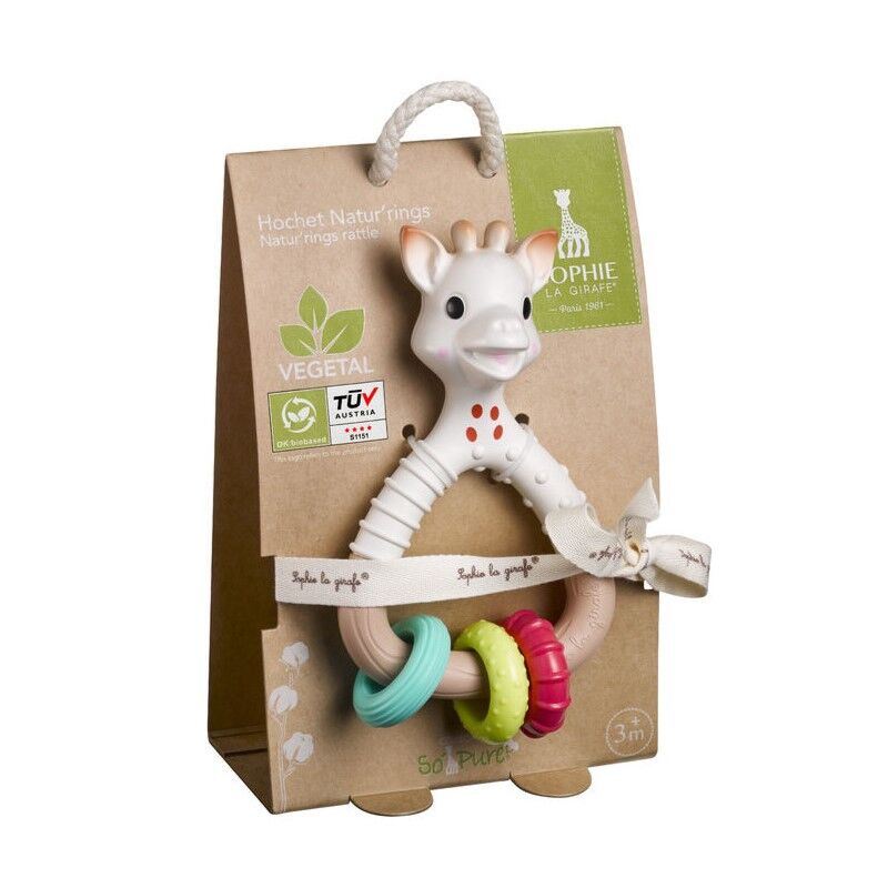El sonajero Natur’rings de Sophie la girafe destaca por ser saludable para el bebé y estar fabricado de forma natural.