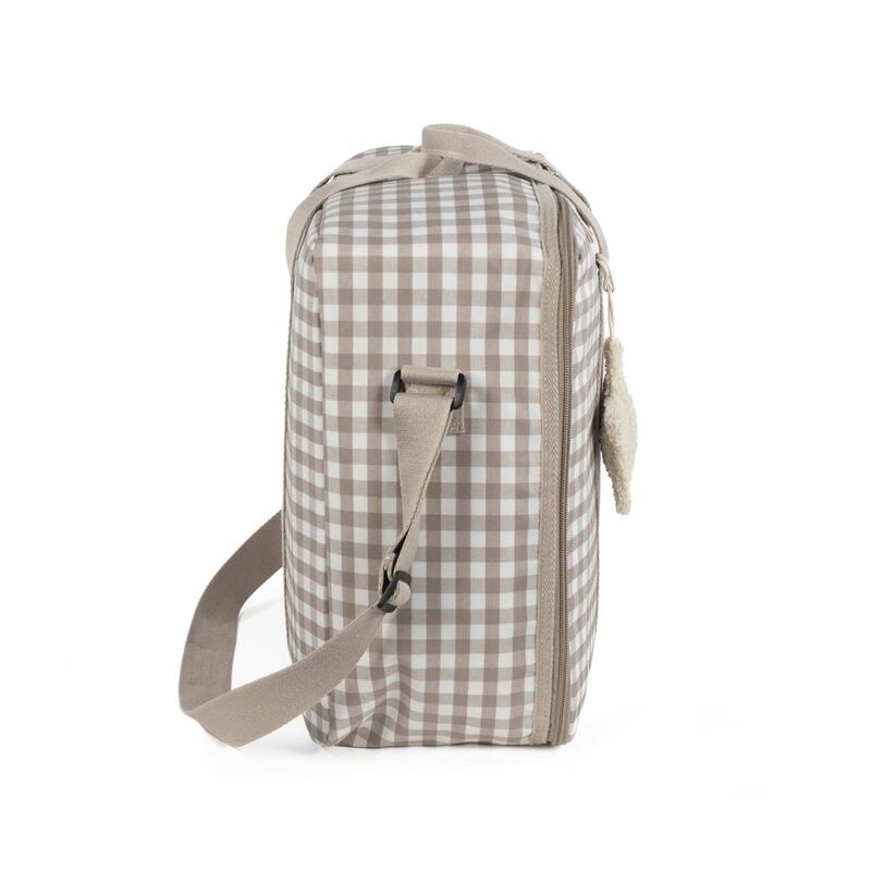 La maleta de bebé Caetana Sand de cuadros beige es un bolso especialmente diseñado para el momento más importante del embarazo, que es la llegada de tu bebé, momento en el que hay un montón de cosas que preparar. Por esto necesitas un espacio cómodo para transportar todo lo necesario para ti, el padre y el niño. Esta maleta de bebé es el modelo perfecto para cubrir todo lo que no puede faltar en este día tan especial. Es cómoda, ligera y manejable con dimensiones rectangulares y apertura práctica para tener todas tus necesidades cubiertas. Cuenta con cierre seguro de cremallera en ambas direcciones que facilitan su apertura, incluye una correa larga para llevar colgada en el hombro y asas cortas de mano. Además en el compartimiento interior tiene un forro a juego con gomas para contener la ropa y mantener todo en su lugar. Incluye un charm en forma de estrella donde puedes bordar el nombre de tu bebé para personalizar el bolso. Gran calidad y mucho estilo. Fabricado en un material resistente y de fácil limpieza a mano o a máquina a 30 °C. Walking Mum protege a tu bebé utilizando los mejores tejidos, libres de colorantes azoicos y sustancias nocivas para la salud. Nuestra colección Walking Mum guarda toda la calidad de la marca Pasito a Pasito pero con un particular sello de estilo urbano y moderno que no pasa desapercibido, para vestir diferente los paseos con tu bebé. Las bolsas de maternidad de esta línea son más sport y prácticas, especialmente pensadas en mamás y papás modernos que aprecian los diseños más actuales y en tendencia sin dejar de lado la calidad y la funcionalidad de los accesorios que complementan y hacen más cómodos todos los paseos con sus bebés. Especificaciones: Materiales: 65% algodón /35% poliéster plastificado. Medidas: 49X37X17 cm.
